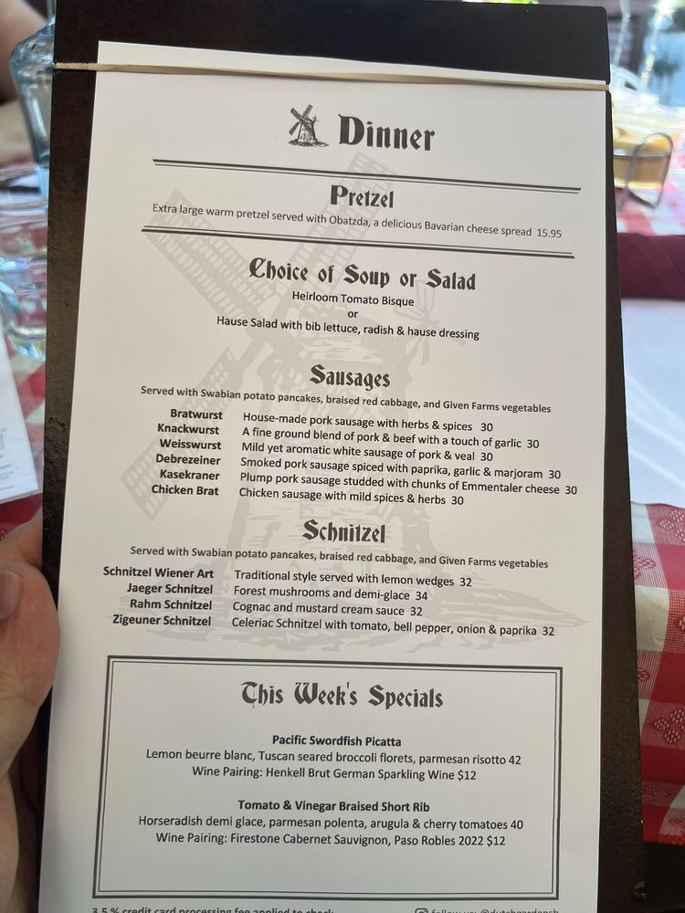 Dutch Garden Restaurant in Santa Barbara, CA offers a delightful blend of German cuisine with a charming ambiance. Known for its Reuben sandwich and rare roast beef sandwich with Swiss, this restaurant has been a favorite for over 40 years. The warm and friendly staff contribute to a wonderful dining experience. The outdoor seating area, complete with water bowls for dogs, adds to the welcoming atmosphere. The top-notch beer selection and fantastic food make it a perfect spot for a date night or casual lunch. With a clean and tidy environment, attentive service, and upbeat energy, Dutch Garden Restaurant stands out as a special place that caters to both meat lovers and vegetarians. Whether you're looking for a new favorite spot or a long-time favorite, this restaurant is definitely worth a visit.